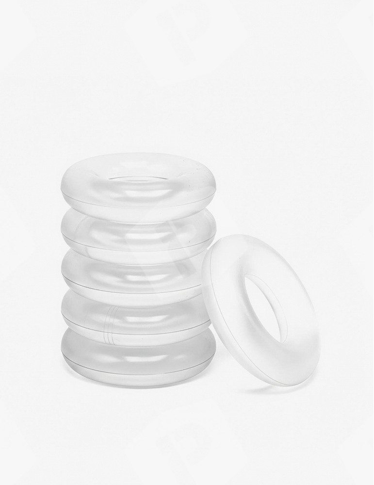 Explorez l'étirement testiculaire progressif avec ce pack modulable de six anneaux transparents empilables.