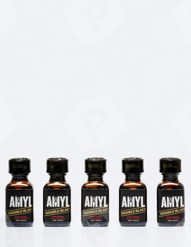 Le pack de 5 poppers Amyl Double Black 24 ml vous offre un format économique pour cette référence ultra-strong.